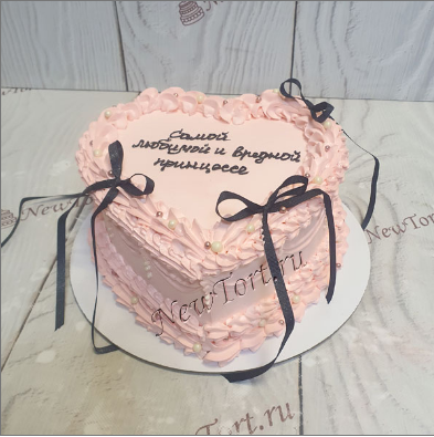 Ретро-торт с сердечками, надписью от руки и кремовыми розами подойдет как для годовщины, так и просто для уютного ужина вдвоем — немного наивно, но очень искренне.